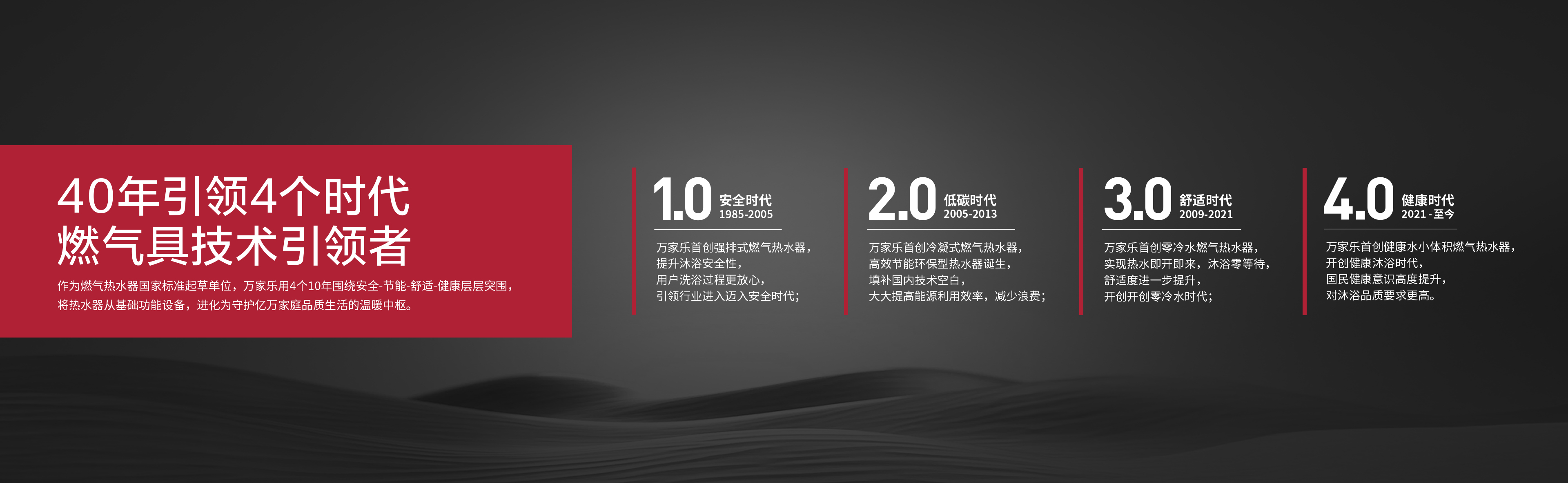 萬家樂始于1985年,專注于改善中國家庭熱水和廚房生活,產(chǎn)品覆蓋熱水、廚電、凈水、采暖四大品類,致力為用戶打造品質(zhì)、快樂、美好的生活。